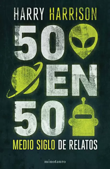 Una recopilación de aniversario. Con motivo de sus cincuenta años de trayectoria literaria, Harry Harrison reunió cincuenta de sus mejores relatos en 50 en 50, una historia por cada año, agrupados según la temática. Así, el libro nos ofrece no sólo una amplia retrospectiva de su producción, sino también una breve historia de cinco décadas de ciencia ficción con temáticas como los alienígenas como reflejo distorsionado de la humanidad, los peligros de la superpoblación y los inventos milagrosos, la exploración de planetas lejanos o la figura de los robots. Todo aderezado con el agudo sentido del humor de Harrison.