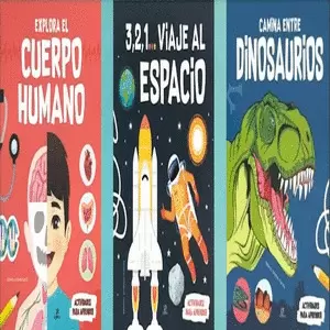 Esta colección permite que los niños comprendan temas actuales y complejos de manera accesible, a través de ilustraciones y actividades.Encontrás los títulosCamina entre dinosaurios3,2,1... viaje al espacioExplora el cuerpo humano