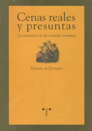 Publicado originalmente como ensayo en 1839, Cenas reales y presuntas es un irónico y divertido relato de la evolución de las costumbres gastronómicas de la Antigua Roma. Thomas de Quincey, uno de los grandes prosistas de la literatura inglesa moderna, despliega en estas páginas una escritura brillante, erudita y festiva a fin de demostrar, con el humor y la sorna que le son propios, que los romanos, «los más ociosos de los hombres», no eran un pueblo atacado por el vicio de la gula, como se nos ha insinuado en tantas ocasiones, sino que, muy al contrario, estaban condenados a pasar sus días en ayunas hasta que llegaba la hora de la cena, esa gran reacción o «contrapeso» que «salva al hombre moderno de volverse loco». Cenas reales y presuntas, así, evoca con tono ligeramente burlón así el mundo de la Antigüedad romana para reivindicar las virtudes y ventajas de la cena galante, cuyos efectos benéficos, a juicio de su autor, son los únicos capaces de responder cabalmente a las tensiones de la vida cotidiana. Pues, como afirma en una de las páginas finales de este delicioso librito, sin «el dulce alivio de la cena de las seis de la tarde, el dulce proceder que sucede al tumulto estrepitoso de la jornada, el tenue resplandor de las luces, el vino y la conversación intelectual, los nervios de todos los hombres naufragarían en un plazo de dos años».