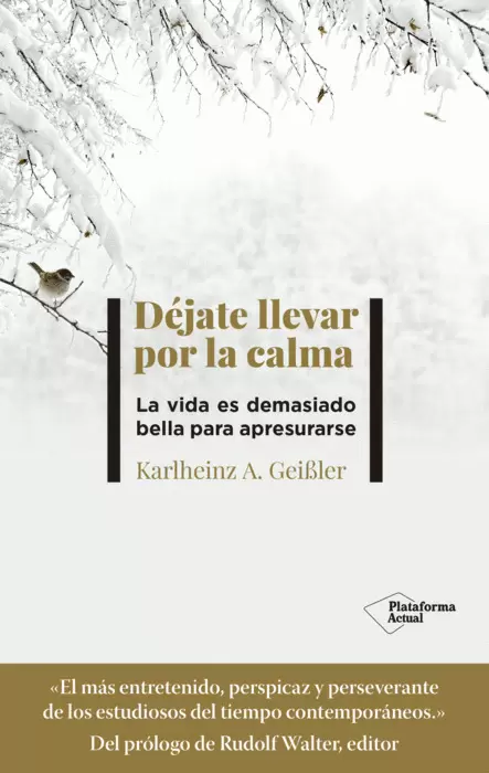 Detestamos el aburrimiento, odiamos las esperas y nos encanta apretar el ritmo. Pero quienes se fustigan sometiéndose a la tiranía de los plazos viven de espaldas a las posibilidades que la vida les brinda. El tiempo es vida, y no solo es precioso, sino también diverso y variopinto. El tiempo es de quienes abjuran de la máxima que lo subordina todo en la vida al beneficio económico. La calma es un anhelo. Y la lentitud, una invitación. Karlheinz A. Geißler, el «estudioso del tiempo más famoso de Europa», muestra que las personas serenas disfrutan más de la vida. Pueden contemplar lo singular, el detalle. En cambio, cuando la vida es una autopista se pasa de largo la felicidad. Por eso: ¡mucha calma! Date tiempo. La vida es demasiado corta y muy hermosa para ir con prisas.