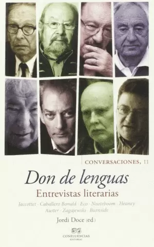 Don de lenguas. Entrevistas literarias, recoge un conjunto de brillantes entrevistas a autores de renombre internacional como Jaccottet, Caballero Bonald, Eco Nooteboom, Heaney , Auster, Zagajewski, Burnsid.