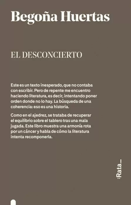 Cuando a la autora le diagnosticaron cáncer de colón, sintió una pérdida repentina de la estabilidad, como si un manotazo derribara todas las piezas de un tablero de ajedrez. El cáncer la había dejado sin guion, debía luchar contra ese cuerpo al que estaba atada y poner orden donde no lo había. Escrito en primera persona y a caballo entre el ensayo, la crónica y el diario personal, escribió un texto que alude a la confusión, al desequilibrio y al desorden emocional y físico que supone de pronto en una mujer joven encarar una enfermedad grave. El libro parte de una rigurosa investigación sobre los testimonios sobre el cáncer en la literatura, citando autores consagrados que en algún momento han escrito acerca de los conflictos y vaivenes emocionales de la enfermedad.