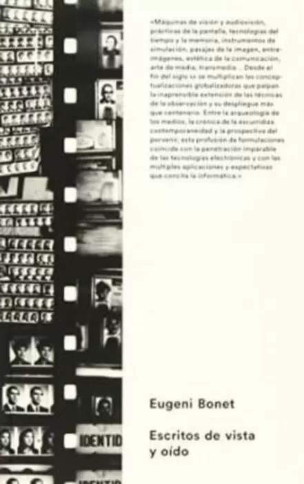 Esta publicación reúne 24 textos de Eugeni Bonet, escritos entre 1975 y 2013, y cuya estructura, arqueología y criba ha ido a cargo de Valentín Roma. Los ensayos que aquí se compilan transitan por cuatro momentos diferentes: uno preliminar, donde un joven Bonet se aproximaba desde las páginas de revistas como Star y Zoom a algunos de los autores y temas que más tarde estudió con mayor conocimiento; otro, que abarca distintos artículos con los que el ensayista delimita y enuncia sus conceptos más destacados (desmontaje, imagen expandida, vocabulario de la instalación, etc.); otro, de índole genealógica, a partir de recapitulaciones sobre el pasado, el presente y el futuro del vídeo y la televisión, así como un cuarto momento donde se señalan los compañeros de viaje de Bonet durante estos años, y sus vínculos con Michael Snow, Wilma Schoen, Werner Nekes, Paul Sharits, Juan Downey y José Val del Omar.
