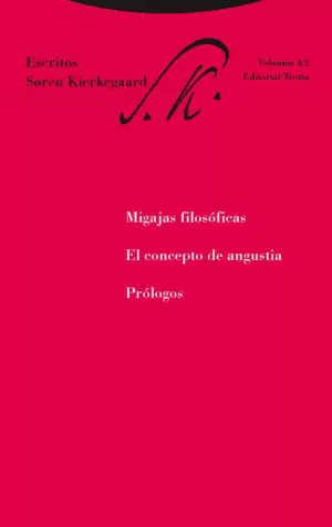 En el año 1844, uno de los más productivos de su carrera, publica Søren Kierkegaard, en el plazo de unos pocos días, los tres escritos aquí reunidos: Migajas filosóficas, El concepto de angustia y Prólogos. Su heterogeneidad estilística y la diversidad de su contenido hacen que aparezcan con la firma de tres pseudónimos diferentes: Johannes Climacus, Vigilius Haufniensis y Nicolaus Notabene, respectivamente.