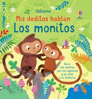 Los deditos de los niños se convierten en los brazos de los monos al introducirlos en los agujeros. De esta forma pueden ser parte de este cuento encantador en el que el monito aprende a coger mangos para calmar la sed, se columpia entre árbol y árbol, y se refugia de la lluvia bajo unas hojas antes de volver a casa y abrazar a su familia.