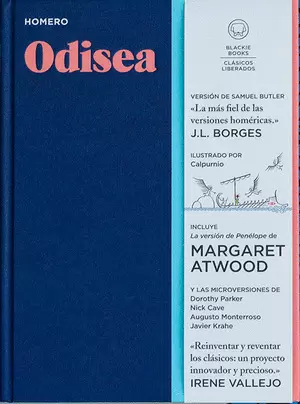 Todos conocemos la historia de la «Odisea», aunque no la hayamos leido. Esta en canciones, en novelas, en poemas, en cuadros, en chistes. Blackie Books arranca su colección «Clasicos Liberados» con la historia de todas las historias occidentales, dando voz tanto a Nick Cave como a Mary Beard u Ovidio. Tomando la adaptación favorita de Borges para incluir, además, una versión de la historia de Margaret Atwood en una edicion cuidadísima, pero no cara, ilustrada a todo color por el gran Calpurnio. Liberar a los clasicos es acercarnos a ellos de nuevas formas.