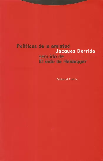 «¡Oh, amigos míos, no hay ningún amigo!». Esta frase atribuida a Aristóteles es el punto de partida y el hilo conductor de Políticas de la amistad. Desde ella, Derrida efectúa un viaje laberíntico en el que se enfrenta con la necesidad de crear o aceptar un nuevo concepto de la amistad y con ello, un nuevo concepto de lo político en general y de la democracia en particular. En los textos entrelazados de Aristóteles, Platón, Cicerón, Montaigne, Kant, Hegel, Nietzsche, Michelet, Schmitt, Heidegger o Blanchot, el pensador francés analiza y examina la historia del concepto de la amistad.