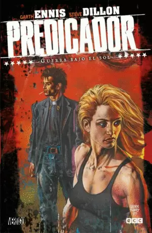 Guerra bajo el sol es el sexto volumen de la saga Predicador, una de las series más aclamadas de finales de los años noventa. Creada por el guionista Garth Ennis y por el dibujante Steve Dillon, esta historia épica americana de vida, muerte, amor y redención viene cargada de sexo, priva, sangre y balas, por no mencionar ángeles, demonios, Dios, vampiros y pervertidos de todas las clases, lo que la convierte en una de las historias más visceralmente atractivas que se hayan editado jamás.