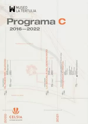 Catálogo recopilatorio que recoge los proyectos realizados en Programa C, plataforma para el arte joven colombiano patrocinada por la empresa Celsia, entre 2016 y 2022 en el Museo La Tertulia. Con proyectos de Apaz, Mariangela Aponte, Óscar Ardila, Felipe Arturo, Nataly Barona, Bemva, Alma Brutau, Valentina Cadena Renza, Guim Camps, Carolina Charry, Daniel España, Diana Figueroa Muriel, Andrés Daniel Góngora, Valeria García, Diego Henao, Diego Hernández, Catalina Jaramillo, David Medina, Ethel Mesa, Monómero, Julieth Morales, Mr. Punkystein Mildientes, Andrea Muñoz Álvarez, Camilo Nemocón, José Olano, Vanessa Ortiz, Ángela Patiño, Daniela Pérez, Ratoncio, Andrea Rey, Laura Rodríguez, Alex Rodríguez, Iván Salazar, Claudia Patricia Sarria, Julián Thomas Sierra, Juan Guillermo Tamayo, Juan David Torres, Cristian Velásquez, Mónica Vilá y Sonnia Yepez. Y textos de Melissa Aguilar, Valentina Cadena Renza, Calidoscopio, Guim Camps, Alberto Campuzano, Adriana Castellanos Olmedo, Jaime Cerón, Lorena Díez, Olga Cecilia Eusse, Jim Fannkugen, Ximena Gama, Alexandra Gelis, Miguel González, Luz Adriana Hoyos, Breyner Huertas, Jorge Lozano, Alejandro Martín, David Medina, Gráfica Mestiza, Monómero, Andrea Muñoz Álvarez, Camilo Nemocón, Adriana Ríos Monsalve, Yohanna M. Roa y Julián Thomas Sierra.