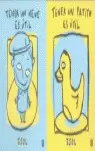 La extraordinaria ilustradora y autora de libros para niños, Isol, nos entrega esta vez un libro objeto, una caja en cartón duro con entradas laterales donde se guardan 17 láminas de 15 x 16 cm que están unidas y son plegables. Las láminas están impresas por sus dos caras. En una serie nos cuenta la historia de un niño que se encuentra un patito y narra todas las cosas para las que le es útil. En la otra cara es el patito el que cuenta que un niño lo encontró y todas las cosas y vivencias que compA con su compañero.