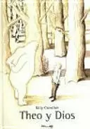 "Una mañana, Theo sale a pasear. En el borde del camino se encuentra con una cosa sentada en una piedra. 'No tengas miedo, ' le dice aquella cosa. 'Eso es fácil de decir, ' piensa el hombrecito. 'Quién es usted?', pregunta educadamente. 'Soy Dios.' '¿Usted es Dios? ¿'El' Dios?' Pues no le imaginaba así "--Page 4 of cover.