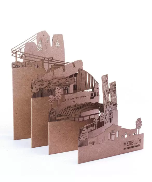 Postal-skyline desplegable fabricada en cartón kraft que recrea cada ciudad en un escenario en miniatura. Puede usarse como postal, guía de anotaciones de viaje o como recuerdo para llevar a casa. El packaging incluye una tarjeta descriptiva en papel reciclado en la que se identifican cada uno de los edificios y motivos de la postal. Empacada en bolsa resellable.