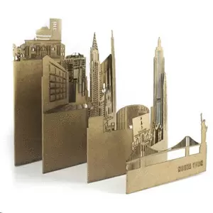 Postal-skyline desplegable fabricada en cartón kraft que recrea cada ciudad en un escenario en miniatura. Puede usarse como postal, guía de anotaciones de viaje o como recuerdo para llevar a casa. El packaging incluye una tarjeta descriptiva en papel reciclado en la que se identifican cada uno de los edificios y motivos de la postal. Empacada en bolsa resellable.