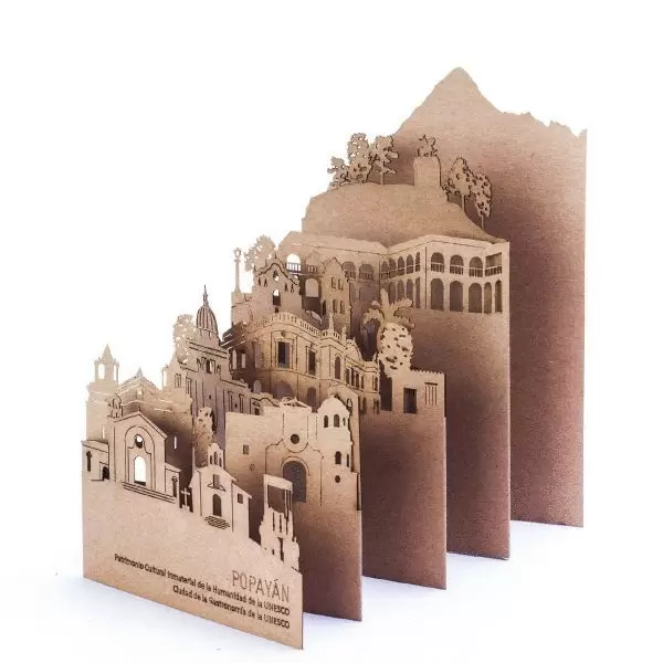 Postal-skyline desplegable fabricada en cartón kraft que recrea cada ciudad en un escenario en miniatura. Puede usarse como postal, guía de anotaciones de viaje o como recuerdo para llevar a casa. El packaging incluye una tarjeta descriptiva en papel reciclado en la que se identifican cada uno de los edificios y motivos de la postal. Empacada en bolsa resellable.