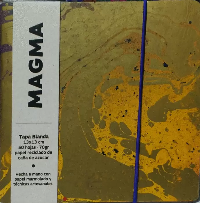 TAPA BLANDA 13 x 13 CMS 50 HOJAS 90 GRAMOS PAPEL RECICLADO CAÑA DE AZUCAR ECHA A MANO CON PAPEL MARMOLADO TECNICA ARTESANAL