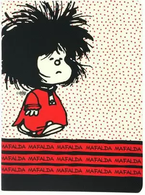 Libreta de tapa blanda, cubierta con acabado mate y textura suave con detalles en folia. Contiene 40 hojas de suave papel color crema con ilustraciones de Mafalda. Acabado soft touch. Encuadernación: cosido Tamaño: 200*150*3 cm