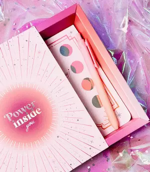 Déjate envolver por la energía de la luna, el sol y las estrellas con esta Box Magical Vibes, un set único diseñado para quienes aman escribir, plasmar sus ideas y conectar con su intuición. Cada elemento ha sido creado con detalles mágicos y holográficos para inspirarte a manifestar tus sueños.