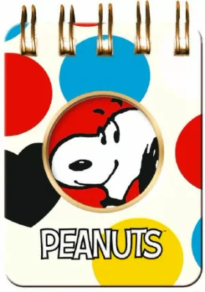 Mini block de tapa dura con ventana. Su portada tiene brillo y relieve y simpaticas ilustraciones de Snoopy. Las hojas interiores son color crema de suave papel de bambu, por lo tanto es un producto ecologico. Ideal para llevar en el bolso.